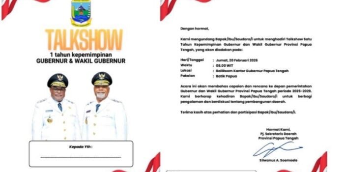NABIRE, TOMEI.ID | Pemerintah Provinsi (Pemprov) Papua Tengah akan menggelar talkshow bertajuk Satu Tahun Kepemimpinan Gubernur dan Wakil Gubernur Papua Tengah sebagai