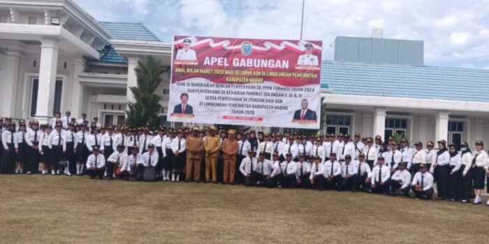 NABIRE, TOMEI.ID | Pemerintah Kabupaten Nabire menyerahkan 196 Surat Keputusan (SK) Pegawai Pemerintah dengan Perjanjian Kerja (PPPK) Formasi 2024 dalam apel gabungan