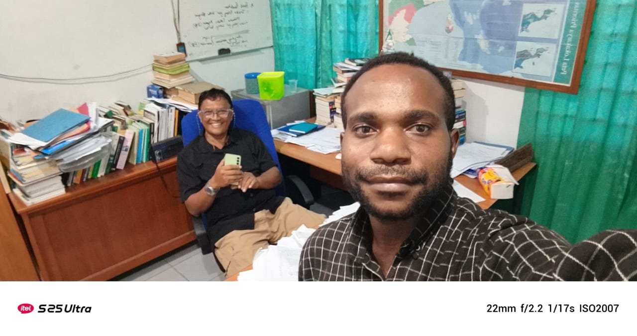 Di tengah ritme kampus yang padat, dosen senior Pendidikan Geografi Dr. Ling. Drs. Ferdinand Harsoyo, M.Si., berbincang dengan mahasiswa bimbingannya, Natalis Takimai, mengenai makna menulis, integritas, dan peran pemuda sebagai pemimpin masa depan Papua.