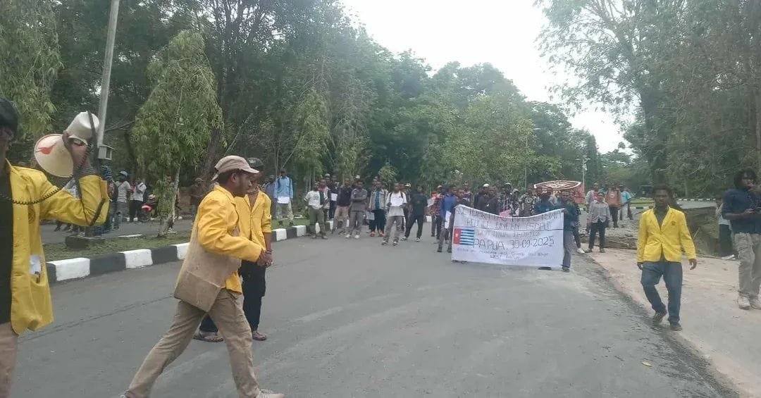 JAYAPURA, TOMEI.ID | Gelombang penolakan terhadap Roma Agreement kembali mencuat dalam aksi unjuk rasa mahasiswa Universitas Cenderawasih (Uncen), Selasa (30/9/2025). Para aktivis menilai perjanjian tersebut sarat manipulasi dan merugikan masyarakat Papua.