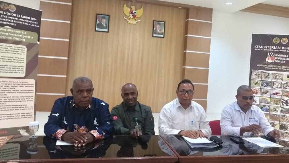 Kepala BBKSDA Papua, Johny Santoso Silaban, menyampaikan permintaan maaf atas pemusnahan barang bukti sitaan berupa opset dan mahkota burung cenderawasih pada 20 Oktober 2025.