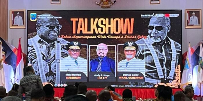 NABIRE, TOMEI.ID | Pemerintah Provinsi (Pemprov) Papua Tengah, menggelar talkshow refleksi satu tahun kepemimpinan daerah sebagai ruang evaluasi terbuka terhadap capaian pembangunan dan konsistensi janji politik kepada masyarakat. Kegiatan berlangsung di Ballroom Kantor Kantor Gubernur, Jumat (20/2/2026).