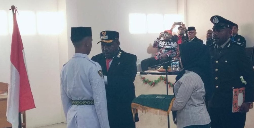 INTAN JAYA, TOMEI.ID | Bupati Intan Jaya, Aner Maisini, secara resmi mengukuhkan anggota Pasukan Pengibar Bendera Pusaka (Paskibraka) tingkat Kabupaten Intan Jaya tahun 2025.