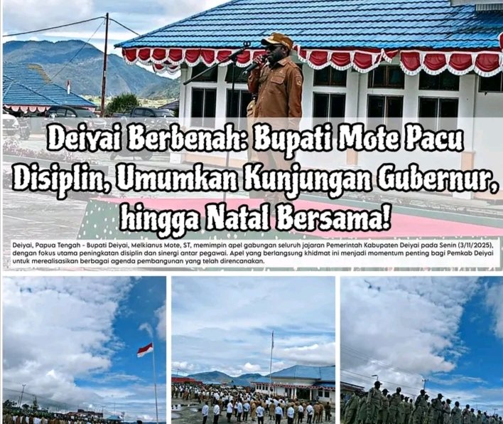DEIYAI, TOMEI.ID | Pemerintah Kabupaten Deiyai terus berbenah menuju tata kelola pemerintahan yang lebih disiplin dan produktif. Hal itu ditegaskan Bupati Deiyai, Melkianus Mote, saat memimpin apel gabungan di halaman kantor bupati, Senin (3/11/2025).