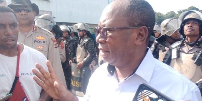 DEIYAI, TOMEI.ID | Bupati Kabupaten Deiyai, Melkianus Mote, melakukan kunjungan lapangan guna memantau progres pembangunan Aula Serbaguna TUYANA yang berlokasi di Kompleks Perkantoran Tigidoo, Waghete, Jumat (23/01/2026) pagi.