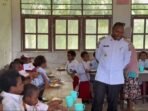 PANIAI, TOMEI.ID | Anak-anak SD INPRES Mayubutu di Distrik Paniai Timur terlihat antusias dan penuh semangat menyambut Bupati Paniai, Yampit Nawipa, saat