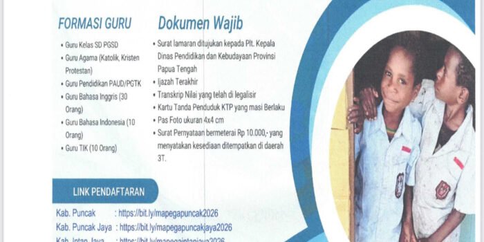 NABIRE, TOMEI.ID | Pemerintah Provinsi (Pemprov) Papua Tengah melalui Dinas Pendidikan dan Kebudayaan menargetkan pemenuhan sekitar 500 tenaga Guru Mapega 3T pada