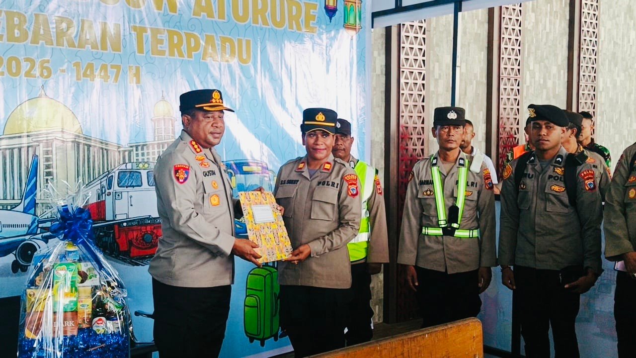 NABIRE, TOMEI.ID | Wakil Kepala Kepolisian Daerah Papua Tengah, Gustav R. Urbinas, meninjau langsung Posko Angkutan Lebaran Terpadu di Bandara Douw Aturure Nabire, Senin (16/3/2026), guna memastikan kesiapan pelayanan dan pengamanan arus mudik menjelang Idul Fitri 2026.