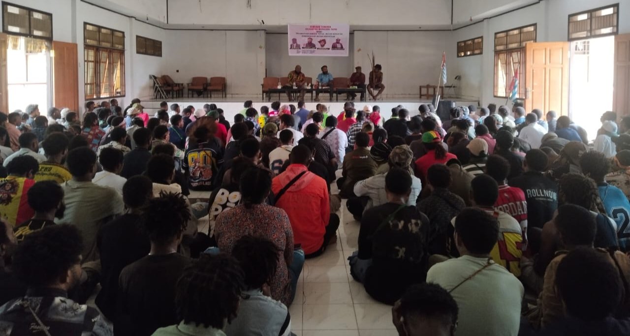 JAYAPURA, TOMEI.ID | Memperingati 64 tahun deklarasi kemerdekaan bangsa West Papua, Solidaritas Mahasiswa Papua (SOMAP) bersama kelompok Cipayung, berbagai organisasi gerakan, serta para tokoh masyarakat menggelar Diskusi Terbuka dengan mengusung tema “Selamatkan Bangsa Papua: Butuh Kekuatan, Kemerdekaan Butuh Persatuan”, Senin (1/12/2025), di Asrama Putra Yahukimo, Perumnas 3 Waena, Kota Jayapura.