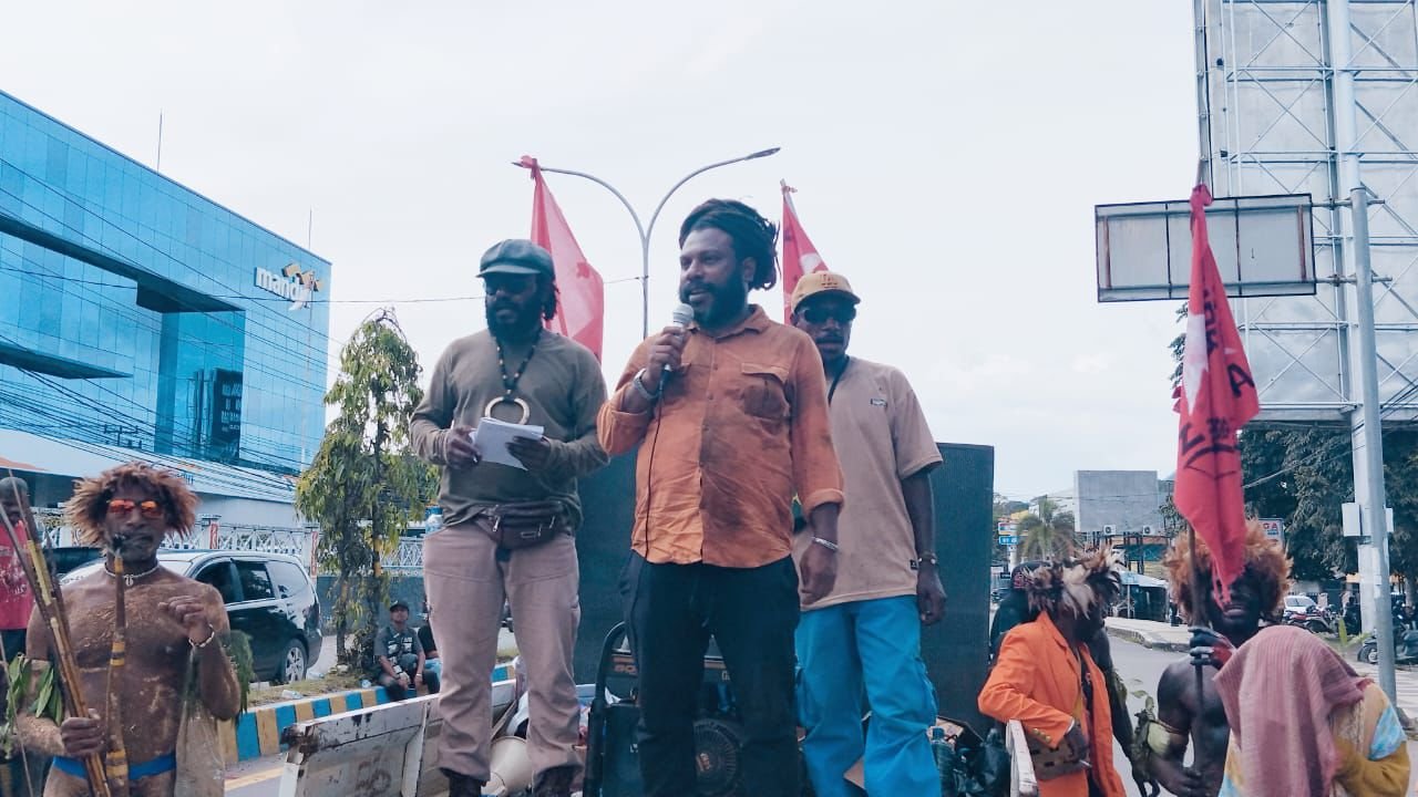 Dalam orasinya, Leonardo Ijie mengkritik pihak-pihak yang menganggap perjuangan hak dan martabat Papua sebagai ilusi.
