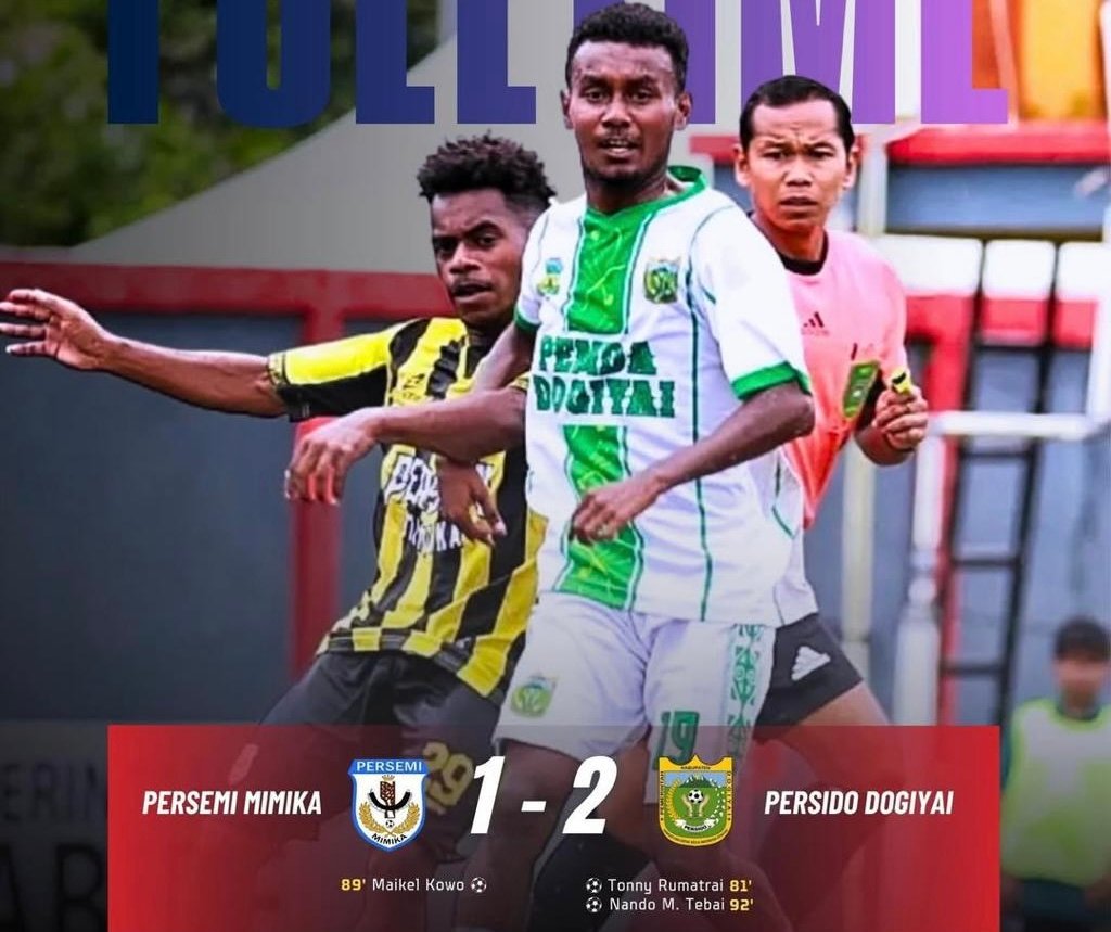 TIMIKA, TOMEI.ID | Pertarungan sengit tersaji dalam lanjutan Liga 4 Zona Papua Tengah Piala Gubernur ketika Persido Dogiyai berhasil menaklukkan tuan rumah Persemi Mimika dengan skor tipis 2–1 di Stadion Wania Imipi SP1, Timika, Kamis (12/3/2026).