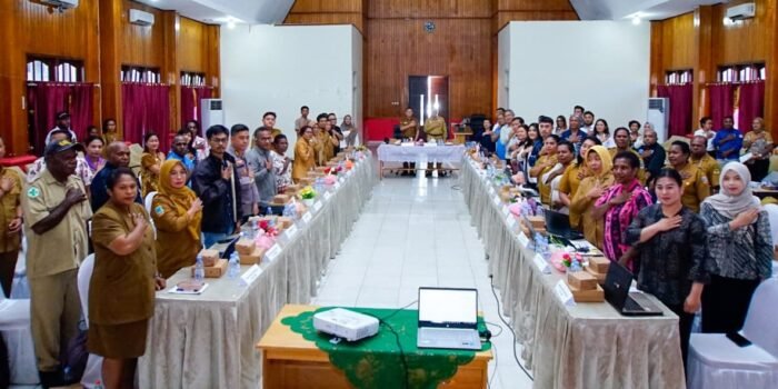 Evaluasi ini mencakup program Kesehatan Ibu dan Anak (KIA), Imunisasi, Malaria, dan Sanitasi Total Berbasis Masyarakat (STBM), bertempat di Guest House Nabire, Papua Tengah, Selasa (9/12/2025).