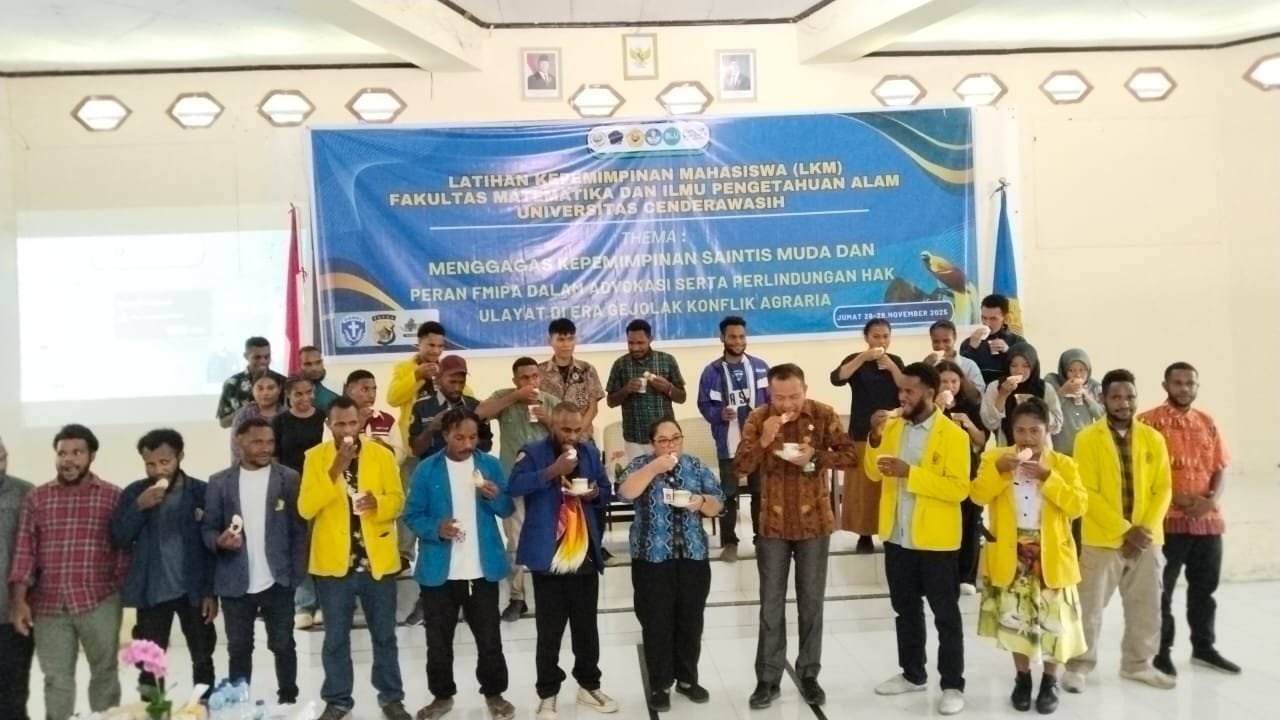 Kegiatan ini mengangkat tema “Menggagas kepemimpinan saintis muda dan peran FMIPA dalam advokasi serta perlindungan hak ulayat di era gejolak konflik agraria” dan diikuti puluhan mahasiswa yang ingin memperdalam kepemimpinan berbasis data dan realitas sosial Papua.