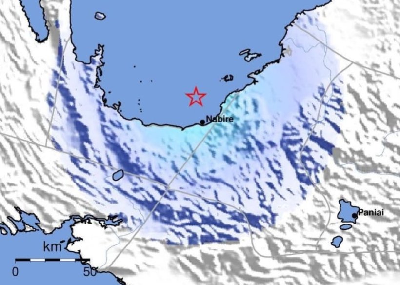 Badan Meteorologi, Klimatologi, dan Geofisika (BMKG) mencatat pusat gempa berada di laut, 21 kilometer barat laut Nabire, dengan kedalaman 29 kilometer. Gempa yang dipicu aktivitas sesar aktif tersebut termasuk kategori dangkal.