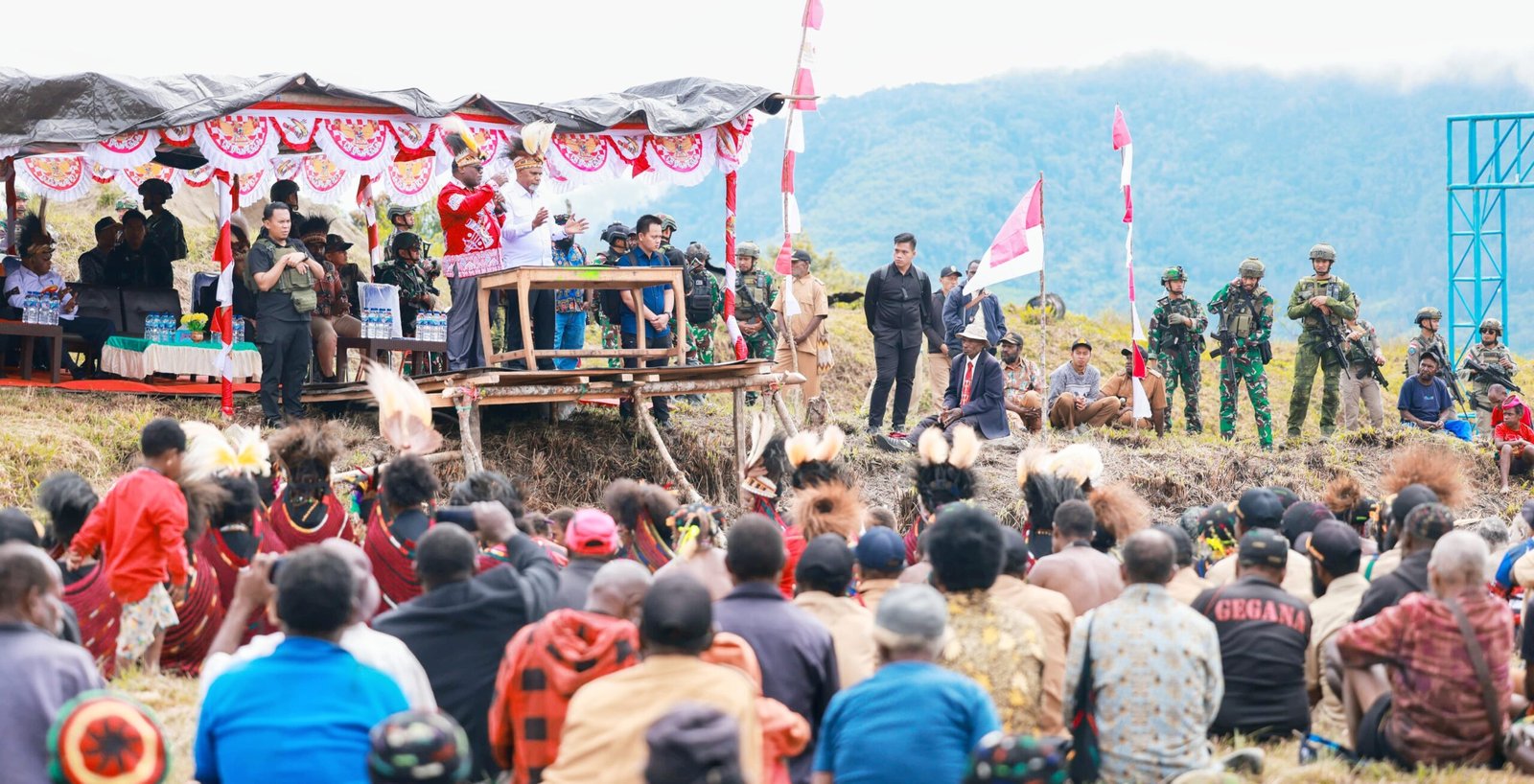 Gubernur juga menyampaikan apresiasi kepada para guru, pendeta, gembala jemaat, serta aparat TNI-Polri yang selama ini melayani dan menjaga keamanan. Ia turut memberikan penghargaan kepada Bupati Puncak dan Ketua DPRD atas peran serta kepedulian mereka terhadap masyarakat Sinak.