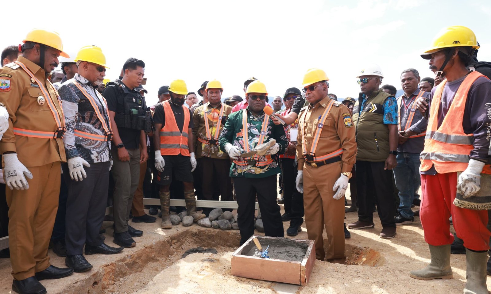 Acara dimulai dengan doa bersama, diikuti sambutan dari Bupati Puncak Elvis Tabuni. Selanjutnya, Gubernur Meki Nawipa, mengenakan noken khas Papua, meletakkan batu pertama di lokasi pembangunan, disusul Bupati Elvis dan para pejabat yang hadir. Tepuk tangan dan sorak gembira warga mengiringi momen bersejarah tersebut.