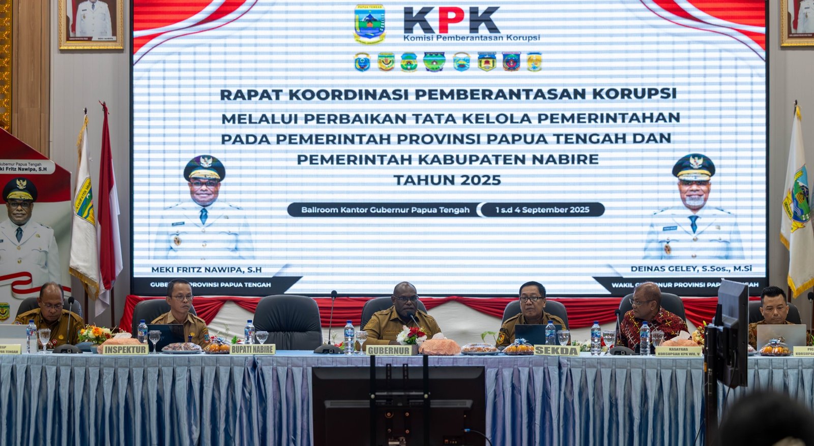 NABIRE, TOMEI.ID | Gubernur Papua Tengah, Meki Nawipa, secara resmi membuka Rapat Koordinasi Pemberantasan Korupsi bersama Komisi Pemberantasan Korupsi (KPK) Republik Indonesia, Wilayah V, di Guest House Jalan Merdeka Nabire, Senin (1/9/2025).