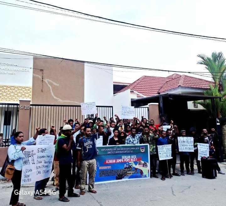 MAKASSAR, TOMEI.ID | Himpunan Pelajar dan Mahasiswa-Mahasiswi Lanny Jaya (HPM-LJ) di kota studi Makassar menyatakan sikap menolak kehadiran militer organik maupun non organik yang didasari pada pengalaman masyarakat yang menjadi korban intimidasi kekerasan sehingga kehadiran aparat dinilai bukan membawa solusi melainkan penderitaan baru di Kabupaten Lanny Jaya, Provinsi Papua Pegunungan.