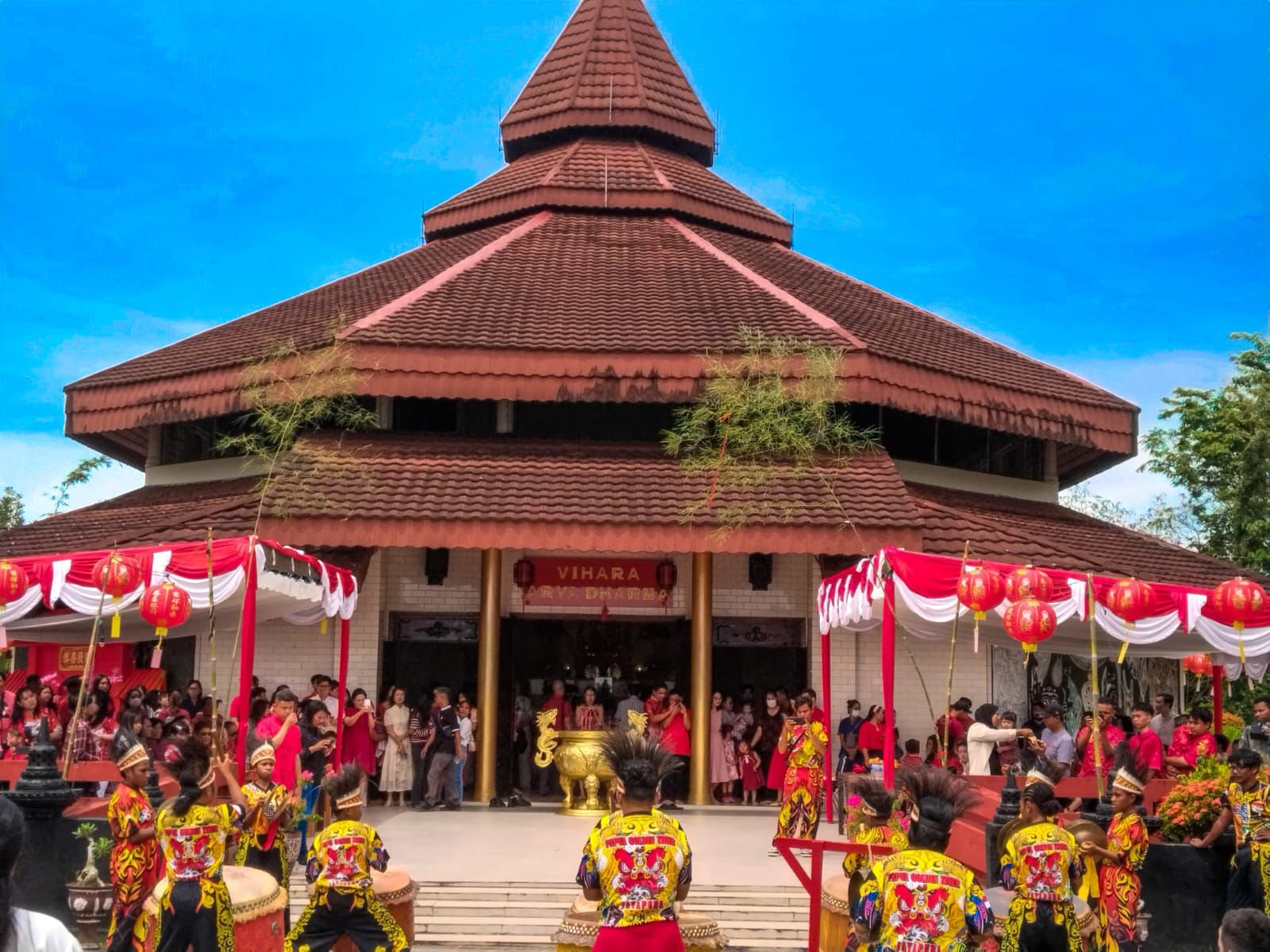 Umat Buddha bersama masyarakat lintas agama memadati vihara sejak pagi untuk bersembahyang sekaligus menyaksikan atraksi barongsai yang memeriahkan suasana, menjadi simbol harmoni dan toleransi yang nyata.
