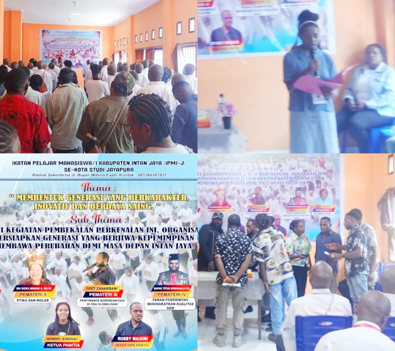 Dengan tema “Membentuk generasi yang berkarakter, inovatif dan berdaya saing” dan sub tema “Melalui kegiatan pembekalan berkenalan ini, organisasi IPMI-J mempersiapkan generasi yang berjiwa kepemimpinan untuk membawa perubahan demi masa depan Intan Jaya,” acara ini berlangsung di Asrama Mahasiswa Intan Jaya, Jalan Buper, Waena, Expo, Distrik Heram, Kota Jayapura.
