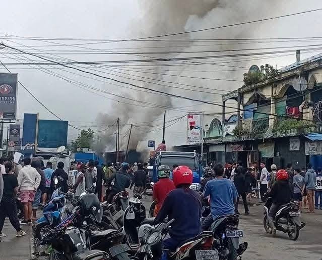 WAMENA, TOMEI.ID | Kebakaran besar melanda kawasan pertokoan di Jalan Irian, Wamena, Sabtu (4/4/2026) pagi. Sedikitnya 14 unit rumah toko (ruko) hangus dilalap api, dengan total kerugian material ditaksir mencapai Rp7 miliar.