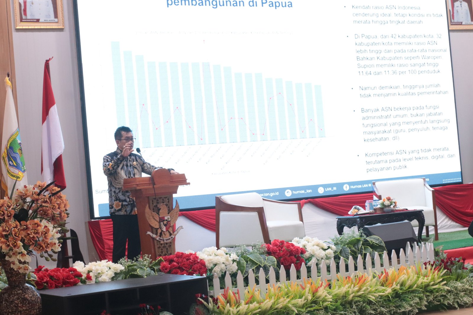 Dalam arahannya, Muhammad Taufiq mengungkapkan rasio ASN di wilayah Papua tergolong tinggi dibandingkan rata-rata nasional. Dari 42 kabupaten dan kota di Tanah Papua, sebanyak 32 daerah memiliki rasio ASN di atas rata-rata nasional.