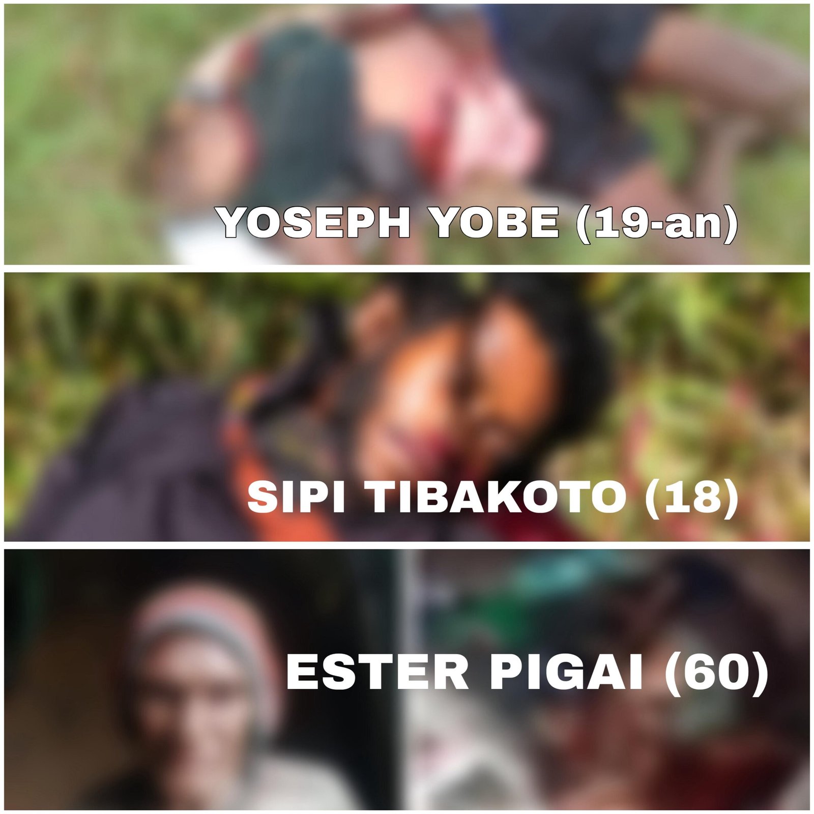 Berdasarkan temuan awal yang dihimpun melalui bukti elektronik berupa foto dan video yang beredar, Koalisi HAM Papua mencatat sedikitnya empat warga sipil ditemukan meninggal dunia dalam kondisi mengenaskan di sejumlah lokasi, baik di dalam rumah maupun di area publik. Korban diidentifikasi dengan inisial EP, ST, dan MY, sementara satu korban lainnya belum teridentifikasi.