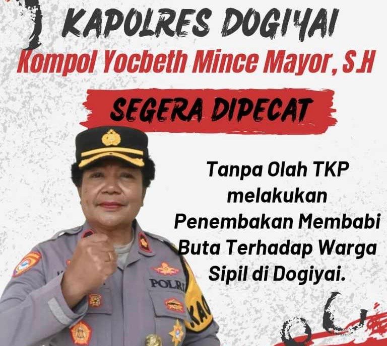 “Kapolres harus bertanggung jawab. Kami mendesak Kapolda Papua Tengah segera mengambil langkah tegas dengan mencopot Kapolres Dogiyai,” tegasnya.