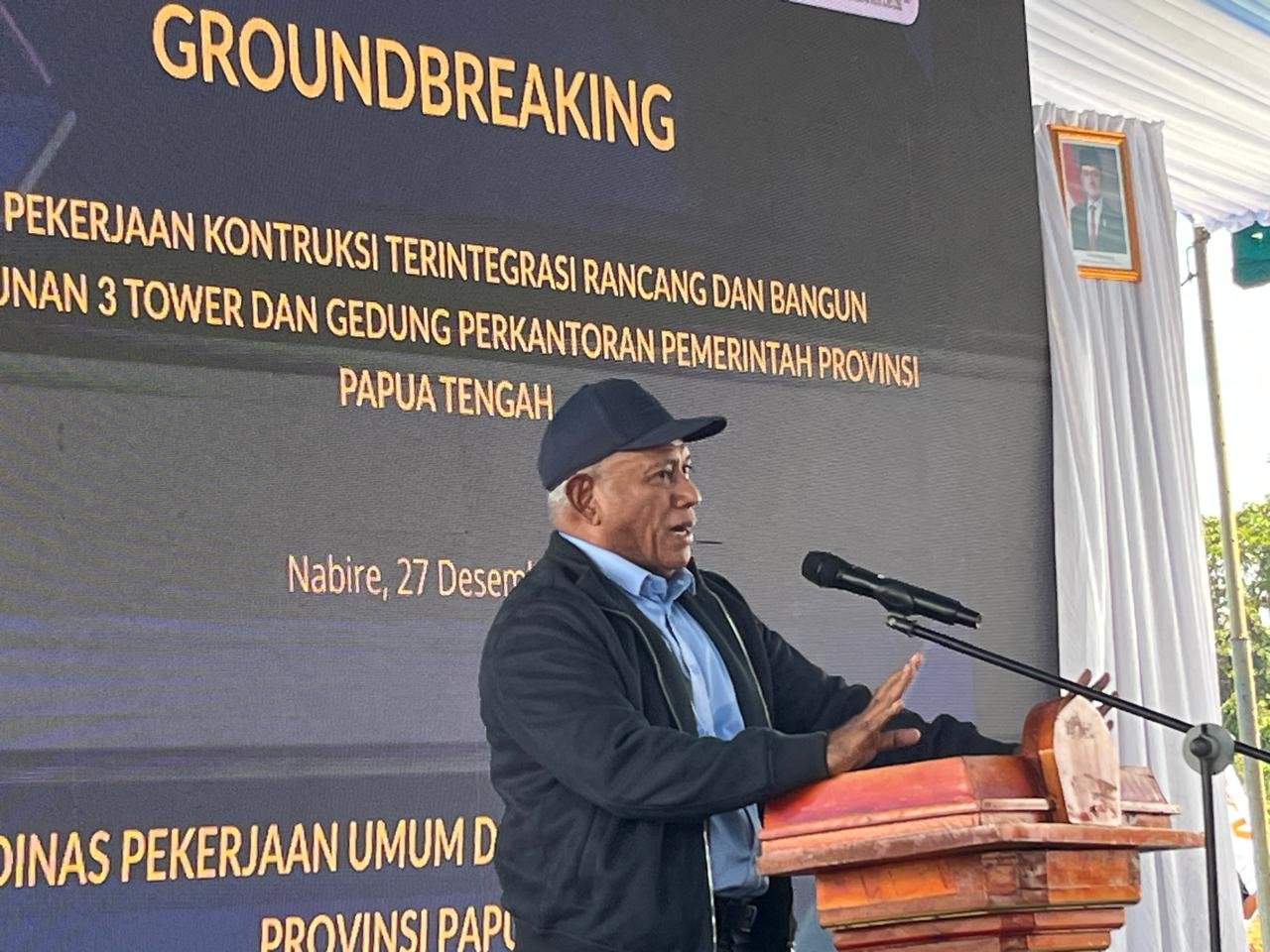 Pernyataan itu disampaikan usai menghadiri peletakan batu pertama pembangunan kawasan perkantoran Pusat Pemerintahan (Puspem) Karadiri II, Distrik Wanggar, Kabupaten Nabire, Sabtu (27/12/2025).