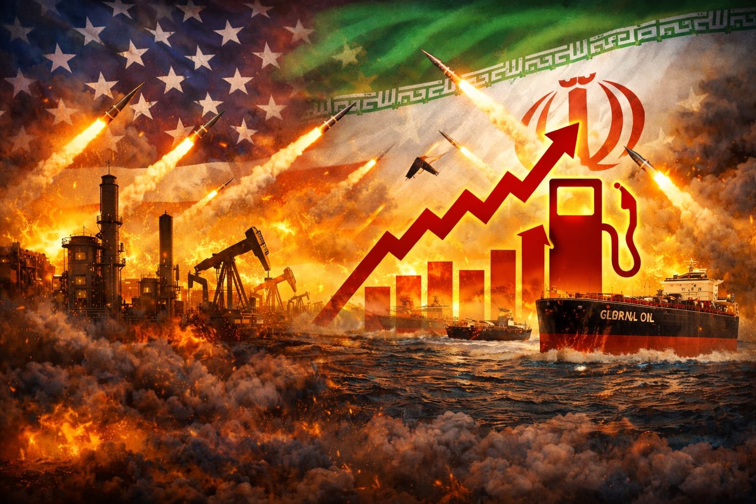Ketegangan geopolitik antara Amerika Serikat dan Iran memicu kekhawatiran terhadap stabilitas energi global. Ilustrasi ini menggambarkan potensi serangan rudal dan gangguan jalur distribusi minyak di kawasan Selat Hormuz, jalur strategis yang dilalui sekitar 20 persen pasokan minyak dunia, yang dapat mendorong lonjakan harga minyak dan berimbas pada kenaikan harga BBM di Indonesia. [Foto: Dok Istimewa].