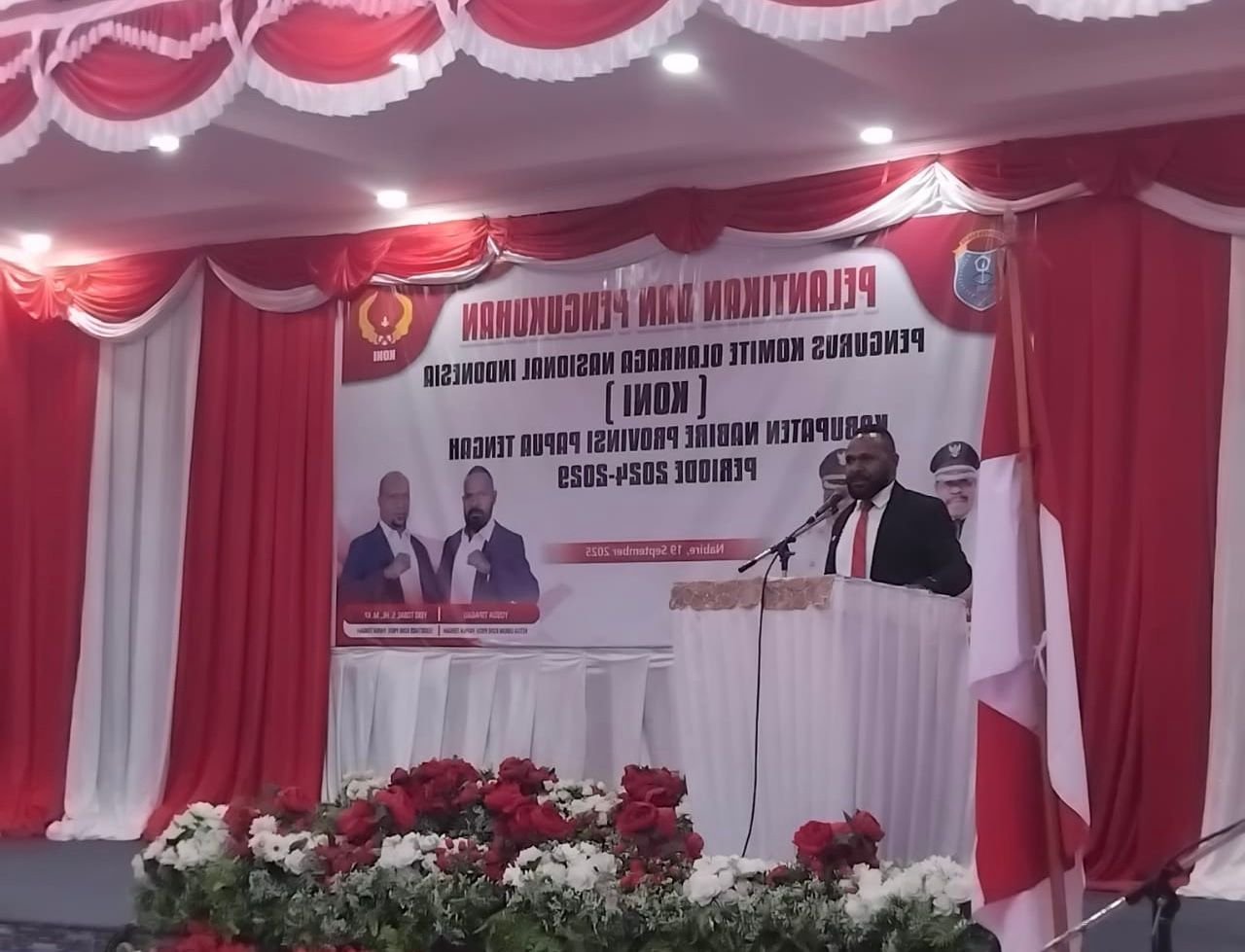 NABIRE, TOMEI.ID | Komite Olahraga Nasional Indonesia (KONI) Kabupaten Nabire, Provinsi Papua Tengah, periode 2024–2029, secara resmi dilantik dan dikukuhkan pada hari Jumat (19/9/2025) di LPP RRI Nabire.