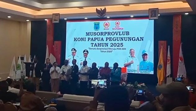 NAMENA, TOMEI.ID | Komite Olahraga Nasional Indonesia (KONI) Papua Pegunungan untuk pertama kalinya menggelar Musyawarah Provinsi Luar Biasa (Musorprovlub) di Hotel Baliem Pilamo, Wamena, Kabupaten Jayawijaya, Minggu (21/9/2025).