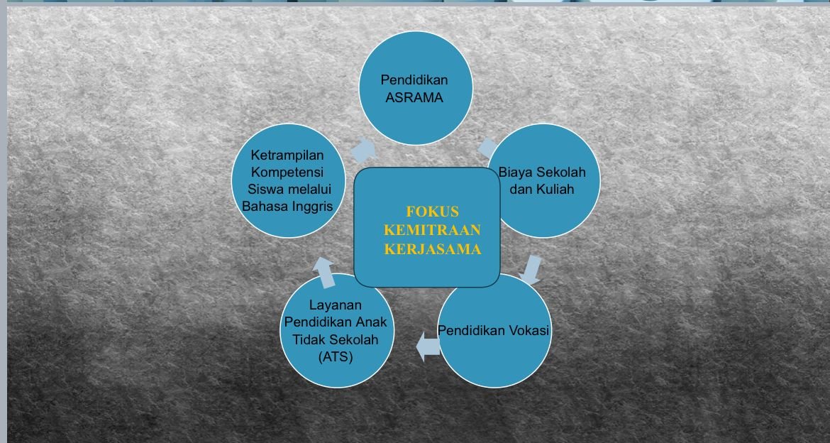 Sementara itu, layanan pendidikan bagi anak tidak sekolah (ATS) dan penguatan kecakapan hidup dilaksanakan melalui Yayasan Anak Karang Tumaritis, yang menyasar anak-anak usia produktif yang tidak terakses pendidikan formal.