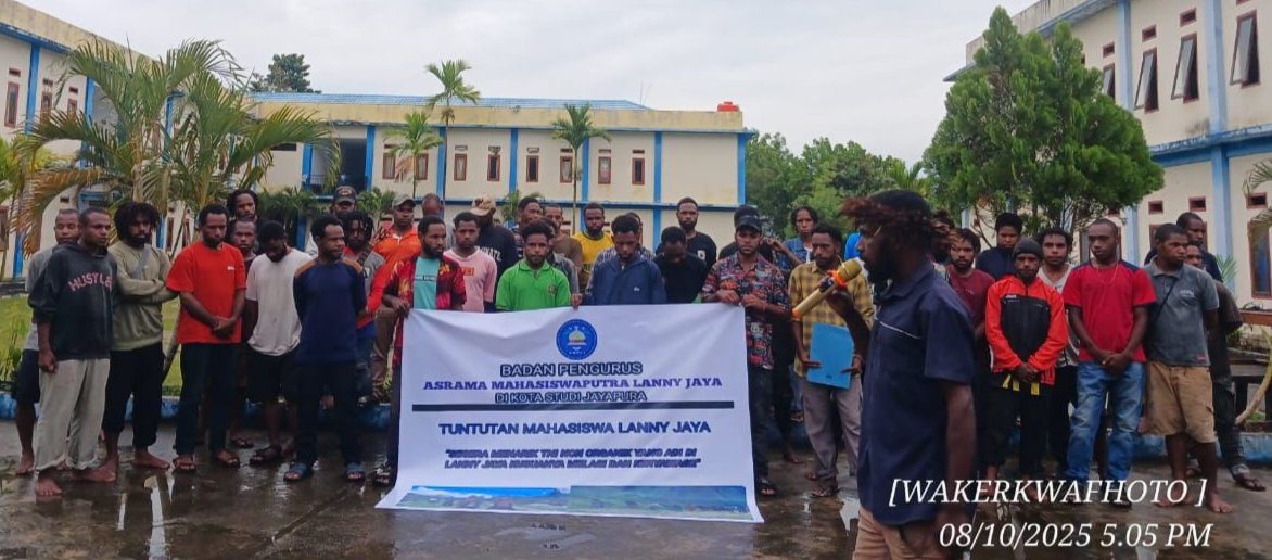 Aksi seruan ini disampaikan dalam konferensi pers yang digelar Rabu (8/10/2025) oleh Badan Pengurus Asrama Mahasiswa Lanny Jaya.