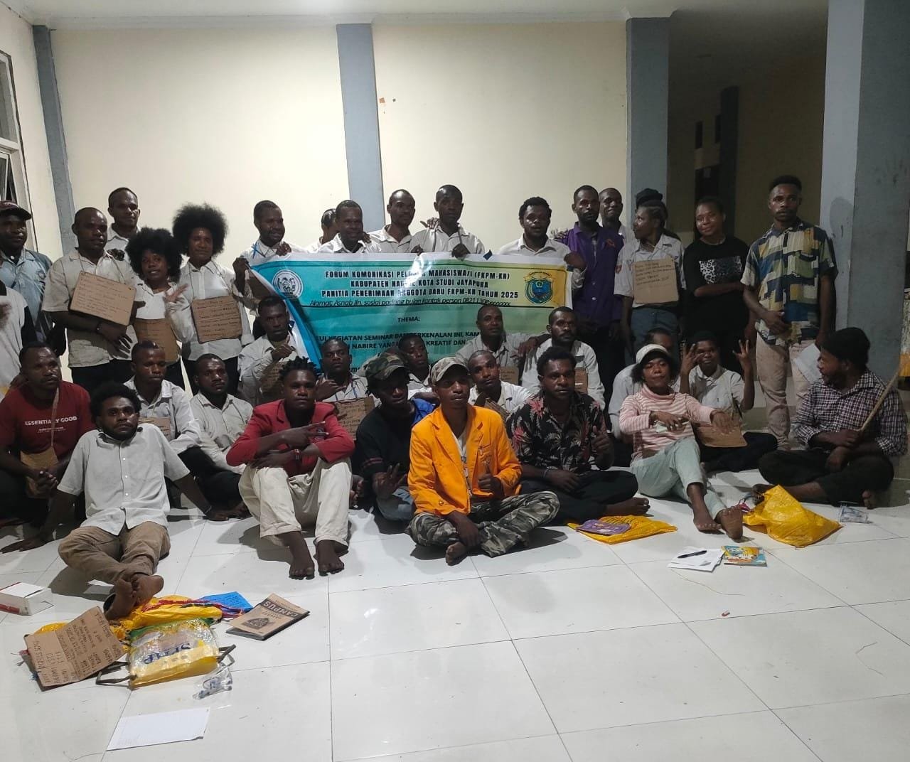 JAYAPURA, TOMEI.ID | Forum Komunikasi Pelajar Mahasiswa Nabire (FKPMN) Kota Studi Jayapura menggelar Seminar dan Ajang Perkenalan Mahasiswa Nabire di Aula Asrama Putra Pemda Nabire, Padang Bulan, Jayapura, Sabtu (18/10/2025).