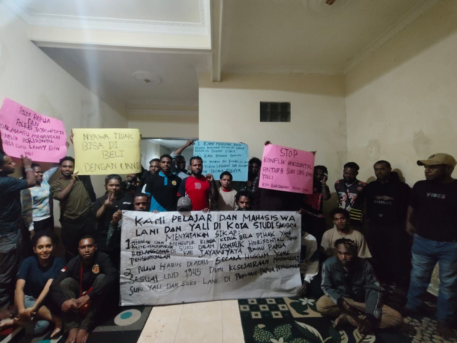 Pernyataan sikap tersebut disampaikan dalam kegiatan resmi yang dilaksanakan di Sekretariat Lani Jaya Surabaya, Kamis (22/1/2026), dan diikuti oleh sekitar 65 mahasiswa/i dari Suku Yali dan Suku Lani.