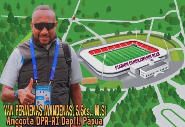 Anggota DPR RI Dapil Papua, Yan Permenas Mandenas, mendukung penuh pembangunan Stadion Cenderawasih di Kabupaten Biak Numfor sebagai simbol kemajuan olahraga dan persatuan masyarakat Saireri. (Dok. Istimewa).
