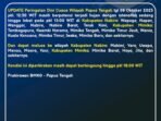 NABIRE, TOMEI.ID | Badan Meteorologi, Klimatologi, dan Geofisika (BMKG) Papua Tengah merilis peringatan dini cuaca ekstrem pada Rabu (8/10/2025) pukul 12.50 WIT.
