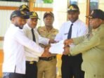DOGIYAI, TOMEI.ID | Kepala Dinas Satuan Polisi Pamong Praja (Satpol PP) Kabupaten Dogiyai, Yohanes Butu, A.Md., S.Sos., secara resmi menyerahkan Surat Keputusan