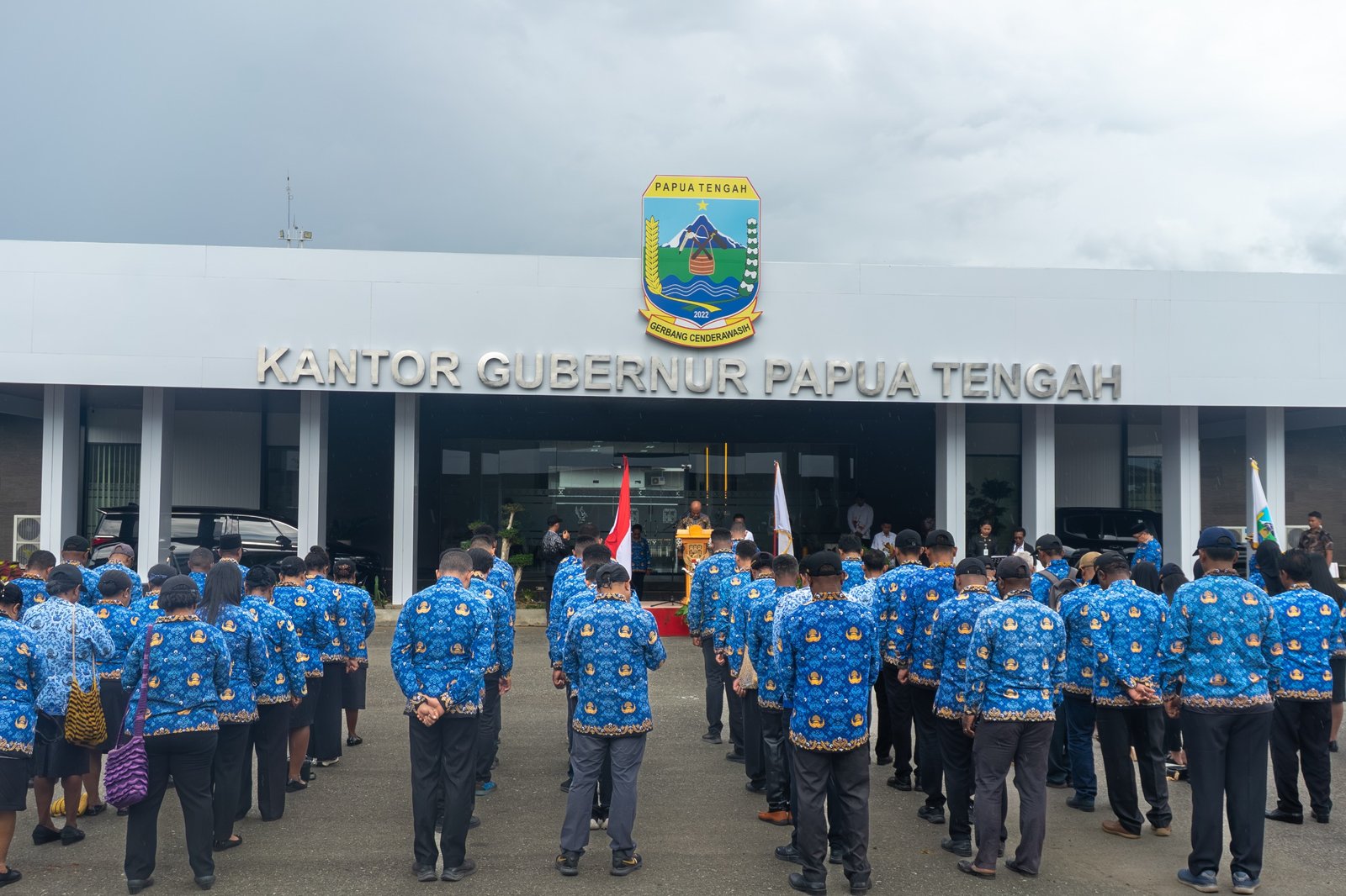 Upacara pelepasan berlangsung khidmat di halaman Kantor Gubernur Papua Tengah, Kamis (2/10/2025), sekaligus menjadi momentum penting untuk meneguhkan komitmen pembangunan sumber daya manusia melalui olahraga.