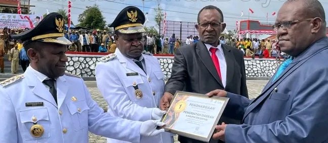 DEIYAI, TOMEI.ID | Pemerintah Kabupaten Deiyai, Provinsi Papua Tengah telah meraih penghargaan peringkat 1 atas capaian kinerja penyaluran Dana Alokasi Khusus (DAK) Fisik semester II tahun 2024, sebagai pengakuan atas efektivitas dan ketepatan penyaluran anggaran untuk pembangunan daerah.
