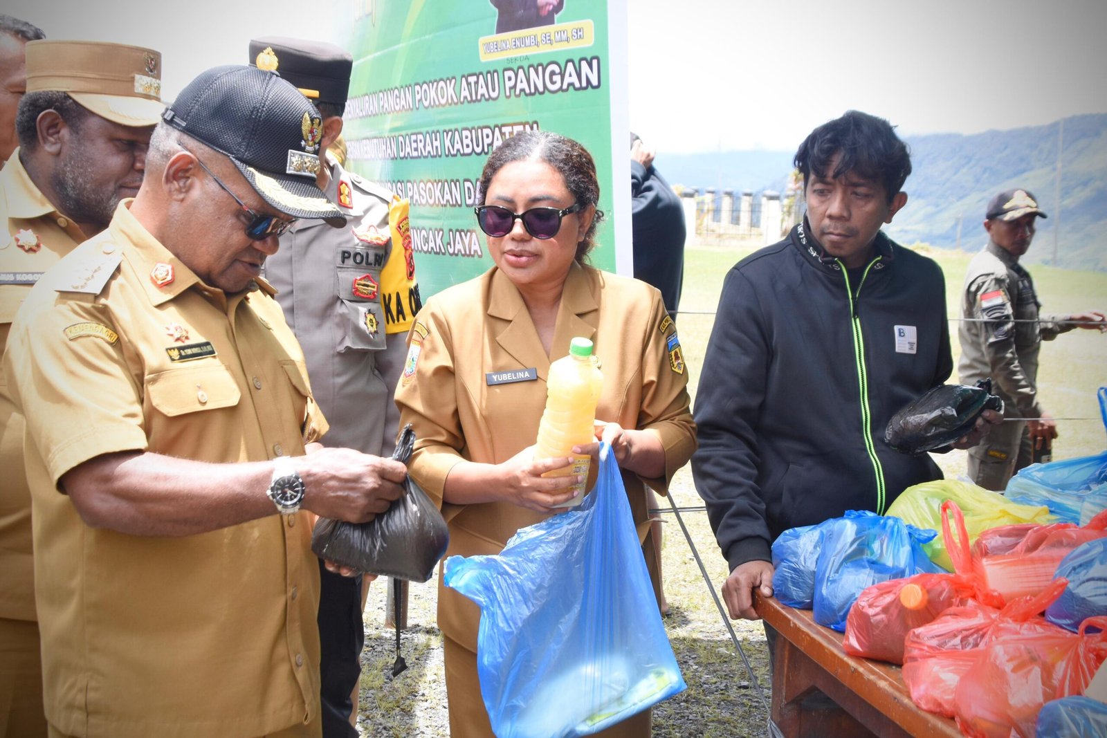 Bupati Puncak Jaya, Dr. Yuni Wonda, secara resmi membuka kegiatan tersebut. Dalam sambutannya, ia menegaskan bahwa program GPM merupakan bentuk komitmen pemerintah daerah dalam menjaga daya beli masyarakat serta mendukung kebijakan nasional pengendalian inflasi.