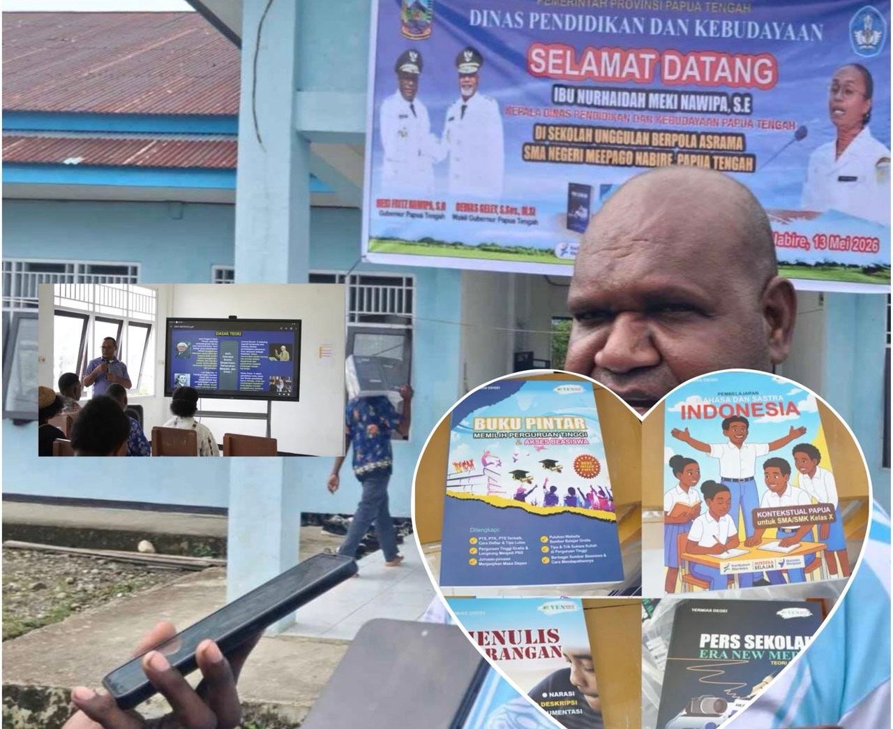 NABIRE, TOMEI.ID | Pemerintah Provinsi (Pemprov) Papua Tengah, Kadisdikbud Papua Tengah, melaksanakan sosialisasi serta implementasi buku pembelajaran kontekstual Papua bagi siswa Sekolah Unggulan Berpola Asrama SMA Negeri Meepago, Kabupaten Nabire, Jumat (13/3/2026).