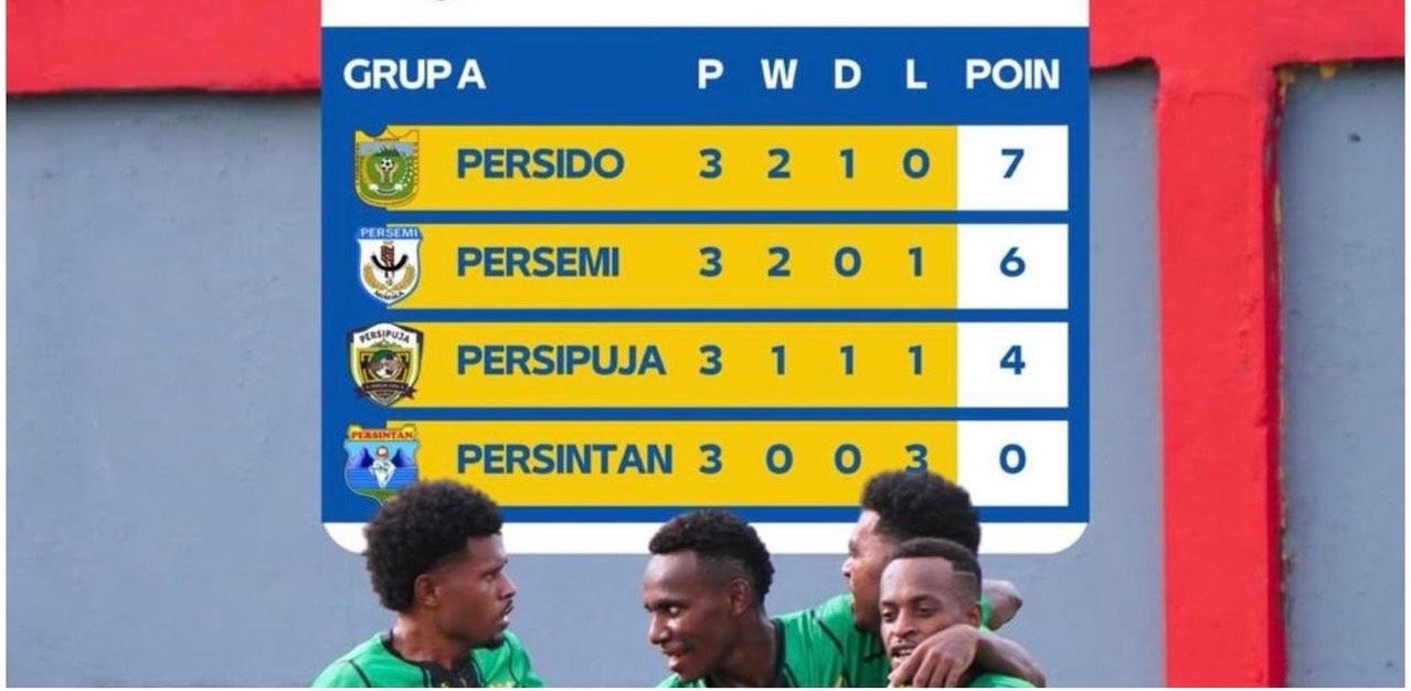Di Grup A, Persido Dogiyai mengoleksi tujuh poin dari tiga pertandingan setelah meraih dua kemenangan dan satu hasil imbang tanpa kekalahan. Raihan tersebut mengantarkan Persido Dogiyai menutup fase grup sebagai pemimpin klasemen.