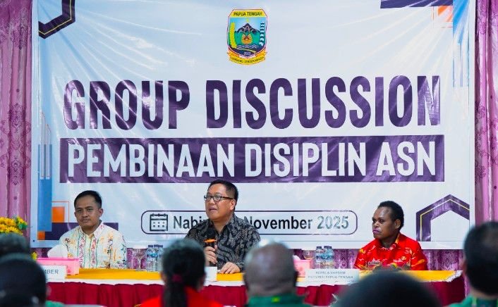 NABIRE, TOMEI.ID | Dalam rangka memperkuat tata kelola pemerintahan yang bersih, efektif, dan berorientasi pada pelayanan publik, Penjabat Sekretaris Daerah Provinsi Papua Tengah, dr. Silwanus Sumule, secara resmi membuka kegiatan Group Discussion Pembinaan Disiplin Aparatur Sipil Negara (ASN) di lingkungan Pemerintah Provinsi Papua Tengah serta delapan kabupaten se-wilayah Papua Tengah.