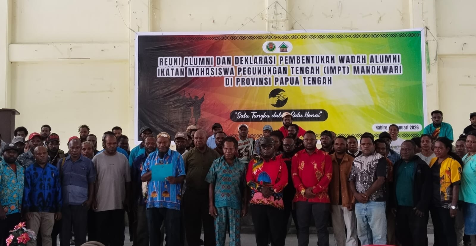 NABIRE, TOMEI.ID | Alumni Ikatan Mahasiswa Pegunungan Tengah (IMPT) Manokwari secara resmi mendeklarasikan pembentukan wadah alumni di Papua Tengah melalui kegiatan reuni bertajuk “Satu Tunggu dalam Satu Honai”.