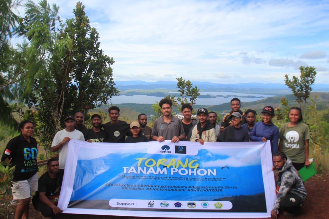 Aksi penanaman pohon mengusung tema “Selamatkan Cyclops” dengan ajakan “Torang Tanam Pohon” di kawasan Telaga Ria Pegunungan Cyclops sebagai bagian dari rangkaian persiapan kegiatan Switch Off Earth Hour yang akan berlangsung pada 28 Maret 2026 di Jayapura.