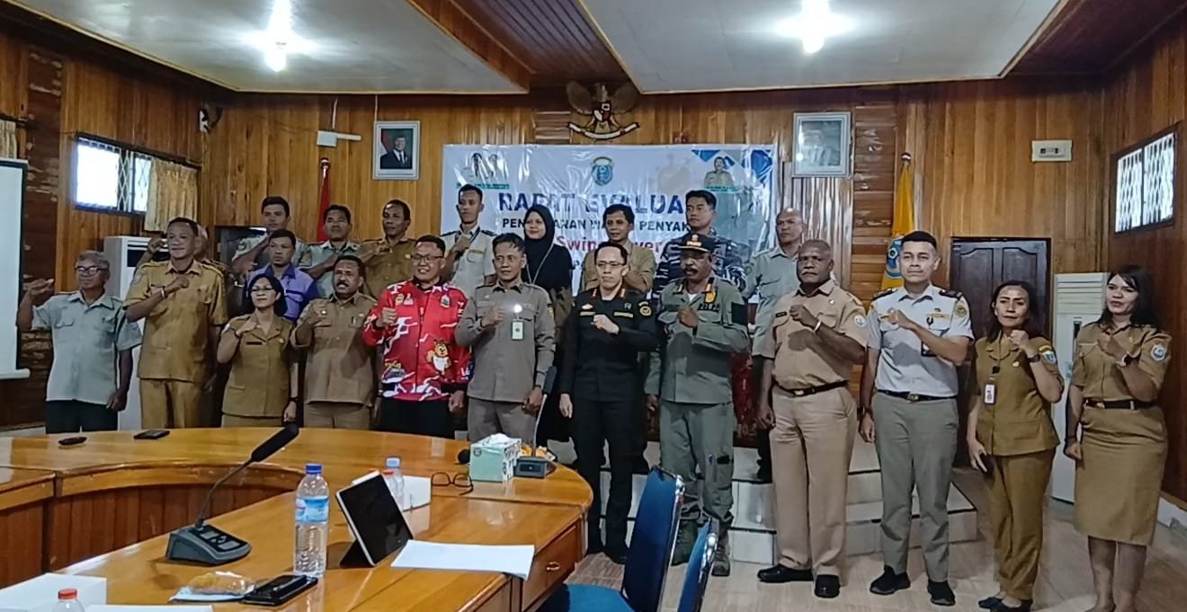 NABIRE, TOMEI.ID | Satuan Tugas (Satgas) Pengendalian Penyakit African Swine Fever (ASF) Kabupaten Nabire melaksanakan rapat evaluasi pengendalian pasca wabah ASF di Aula Sekda Kabupaten Nabire, Senin (12/8/2025).
