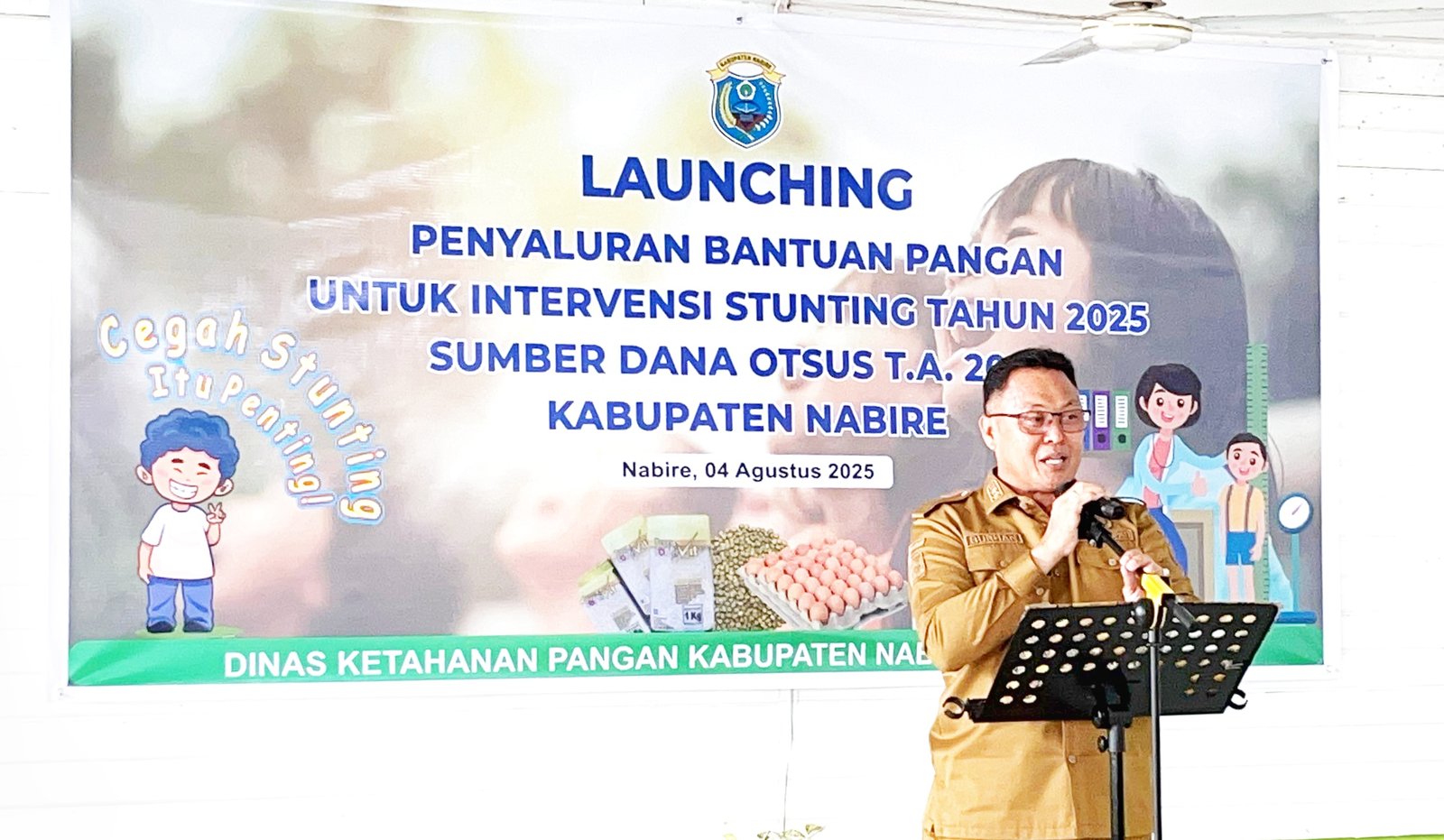 NABIRE, TOMEI.ID | Pemerintah Kabupaten Nabire melalui Dinas Ketahanan Pangan resmi melaunching Penyaluran Bantuan untuk Intervensi Stunting Tahun 2025, Senin (4/8/2025), di Aula Kantor Dinas Ketahanan Pangan Nabire.