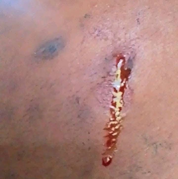 Luka tembak yang dialami Jhon Pekei (25) pada bagian bahu kiri bawah setelah insiden penembakan yang dilaporkan terjadi di Kampung Pogito, Distrik Kamu Utara, Kabupaten Dogiyai, Papua Tengah, Sabtu (7/3/2026). [Foto: Dok. Warga].